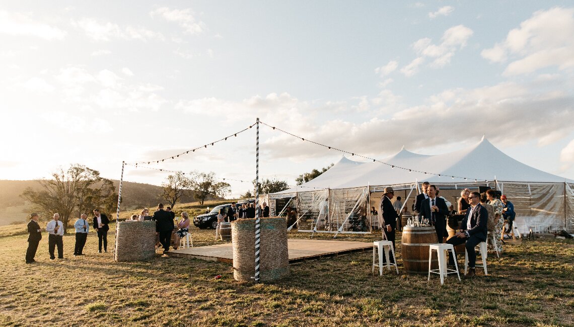 Our modern marquee sits on a hill overlooking a beautiful dam on the property and seats up to 150 or 250 cocktail style. Clear drop-down sides will keep you toasty on any chilly evening along with beautifully crafted fire pits to enjoy the uninterrupted views of the stars above.
