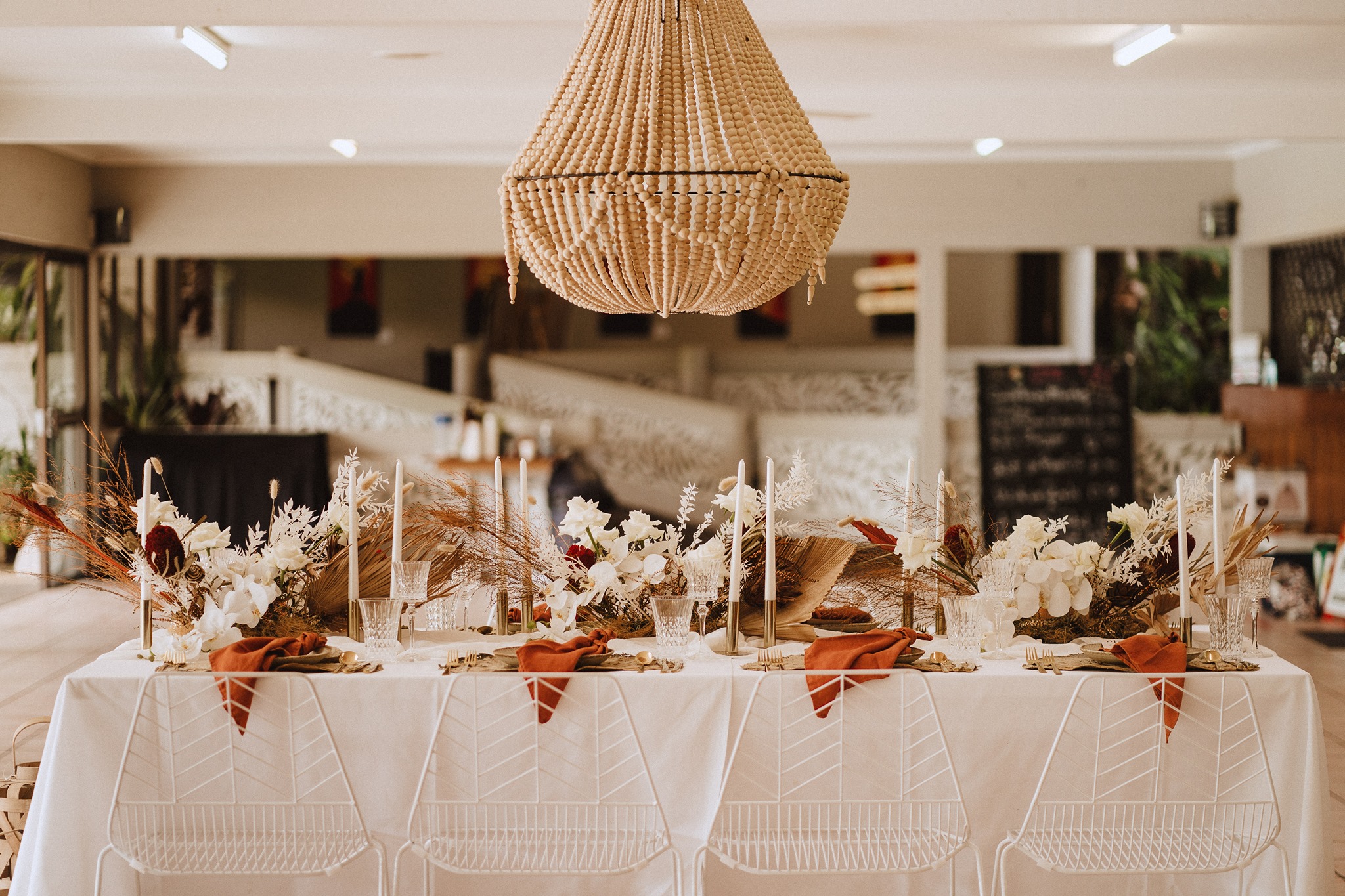 Colonial Restaurant - our medium-sized reception venue is filled with natural light and overlooks the front lake and rainforest edged field.