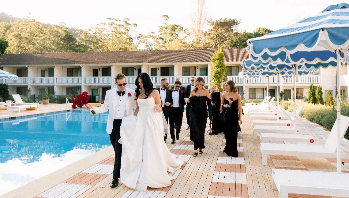 The Lodge Jamberoo is a country hotel located on 9 riverfront acres amongst pine trees and rainforest just 10 minutes from Kiama's beaches. When you wed at The Lodge all your family & friends stay onsite with you in 39 hotel rooms. We also have a riverfront chapel, a backup indoor ceremony space, an incredible wedding hall, outdoor pool, restaurant and bar with fireplace.