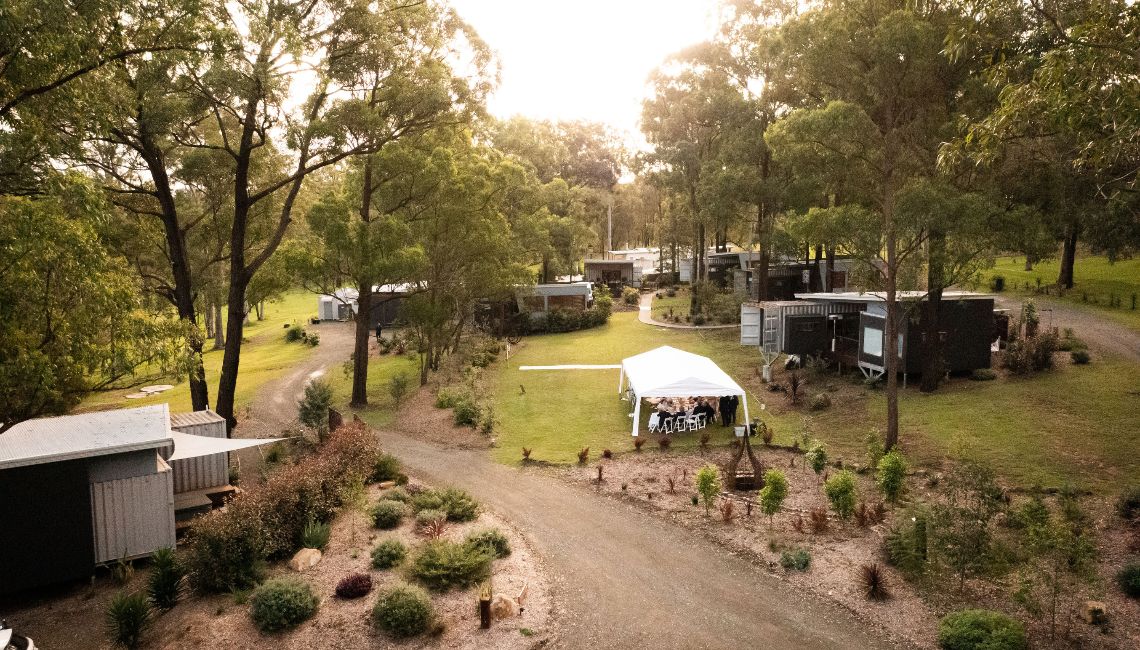 For your guests and bridal party, we have 5 self-contained luxury cabins that sleep up to 14 people. Made from recycled shipping containers, each cabin includes a private outdoor spa, BBQ, and comfortable interiors for a relaxed and unique stay.