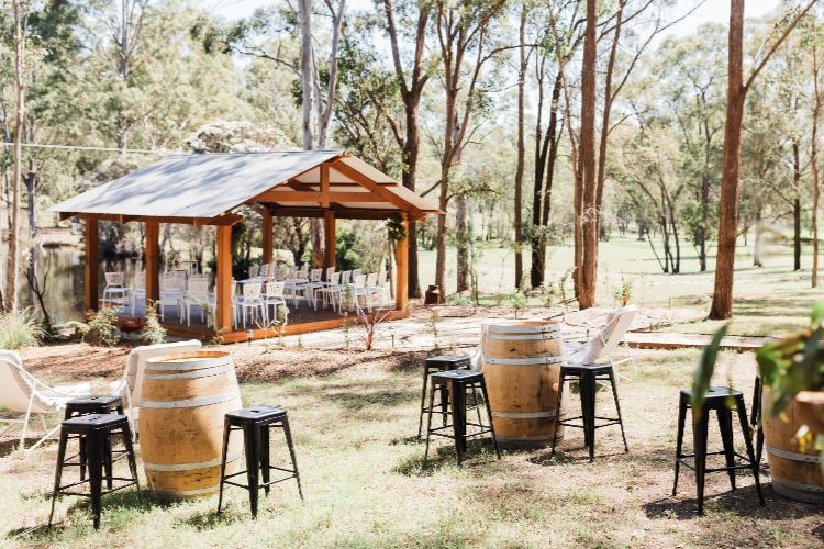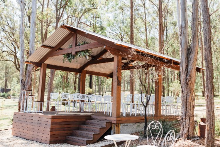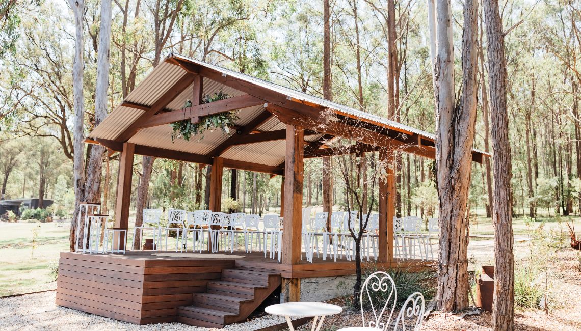 The Ironbark Pavilion is one of our signature spaces, easily adapted for any ceremony or reception style. The Balcony is our undercover reception area, offering a versatile layout with a cosy, intimate feel and views over our beautiful property.